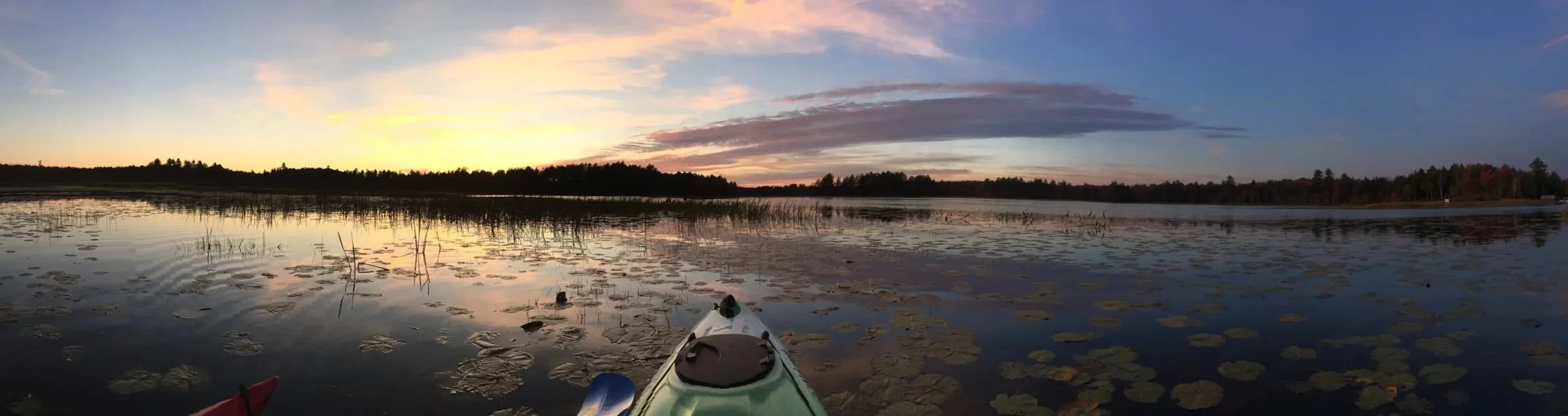 Kayaks and canoes on a beautiful sparkly lake
